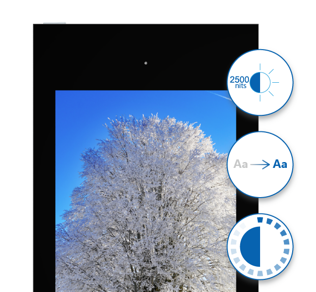 With Mitsumaru’s Automatic Brightness Control, the display will adjust its brightness levels dependant on the external lighting conditions.